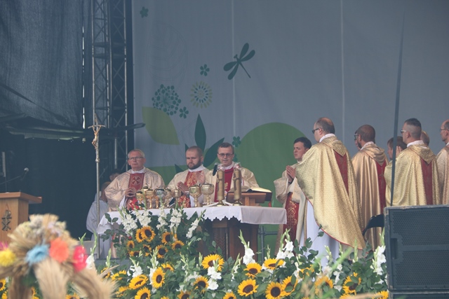 Akcentował, że chleb jest po to, aby się nim dzielić. – Przedstawiciele różnych władz, społeczności i instytucji chcemy dzisiaj modlić się za was, byście umieli ten chleb sprawiedliwie i dobrze dzielić, ale chcemy też prosić was, byście umieli też sprawiedliwie dzielić owoce pracy – mówił celebrans.