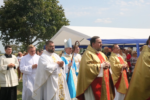 Wraz z biskupem kaliskim Damianem Brylem modlili się: ks. Marcin Nowicki, administrator parafii NMP Wniebowziętej w Trębaczowie i diecezjalny duszpasterz rolników, sołtysów i środowisk wiejskich, duchowieństwo, przedstawiciele władz powiatowych i gminnych oraz licznie zgromadzeni wierni.