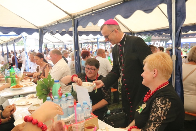 Podkreślał, że rolnicy powinni być docenieni za swoją pracę. -Chciałbym prosić, żebyśmy dzieląc się tym chlebem dbali o rolników, żebyśmy tworzyli warunki do tego, żeby mogli pracować i mogli być sprawiedliwie za tę swoją pracę wynagradzani. Bardzo proszę wszystkich odpowiedzialnych, wszystkich mających wpływ na to, żeby o rolnikach pamiętali i wspierali ich tworząc możliwości rozwoju, doskonalenia, ułatwienia ich trudnej pracy, ale także by mogli cieszyć się obfitymi owocami swojej pracy – powiedział biskup kaliski.