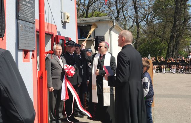Po Mszy św. bp Bryl poświęcił tablicę upamiętniającą jubileusz 100-lecia jednostki OSP.