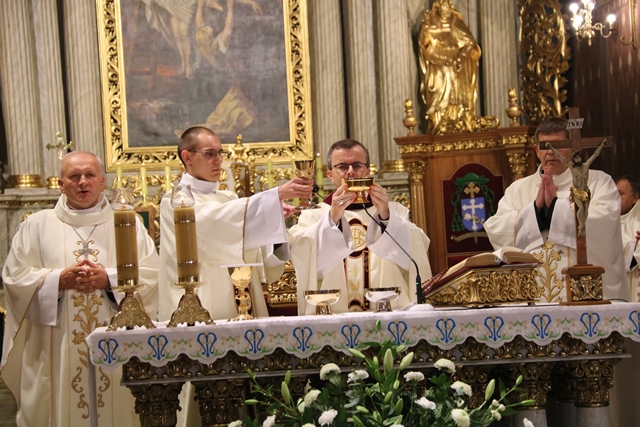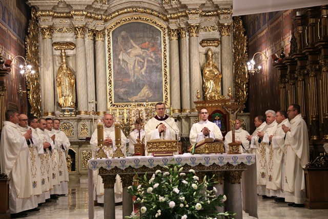 Wraz z biskupem kaliskim Damianem Brylem Mszę św. koncelebrowali biskup pomocniczy Łukasz Buzun, ks. kan. Paweł Guździoł, wikariusz biskupi, ks. kan. Marcin Papuziński, kanclerz Kurii Diecezjalnej, ks. kan. Bogumił Kempa, oficjał Sądu Biskupiego, ks. prał. Adam Modliński, proboszcz katedry, kapłani wchodzący w skład rad oraz wicedziekani dekanatów.