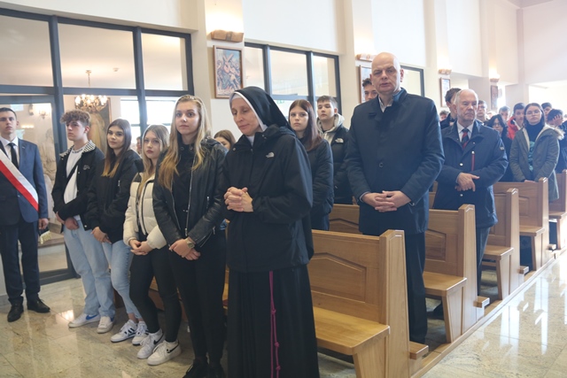 Fot. Ewa Kotowska-Rasiak/KAISzkoła winna stać się kuźnią cnót społecznych tak bardzo potrzebnych naszemu narodowi – mówił bp Damian Bryl, który przewodniczył Mszy św. w kościele pw. św. Jadwigi Królowej z okazji obchodów 50-lecia Zespołu Szkół nr 2 im. Przyjaźni Polsko-Norweskiej w Ostrzeszowie.