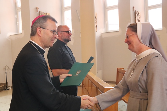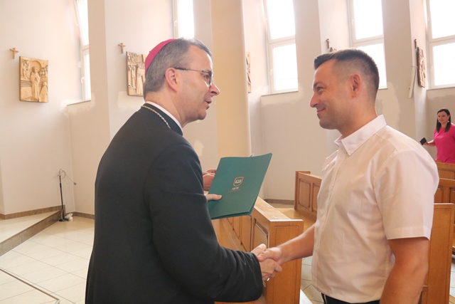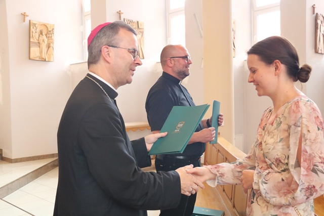 Po Mszy św. bp Damian Bryl wręczył absolwentom studium teologiczno-katechetycznego dyplomy.
