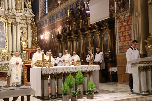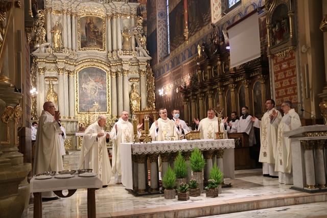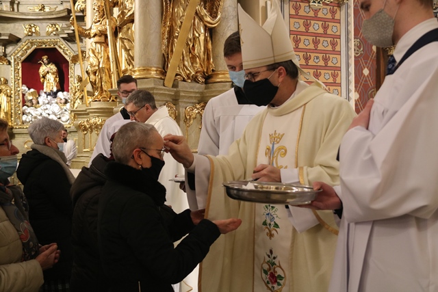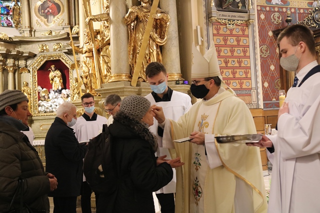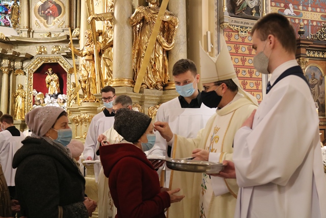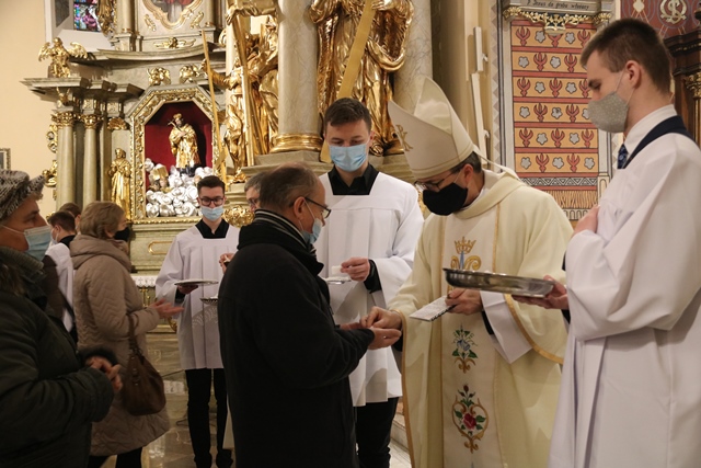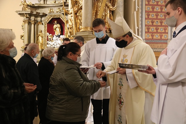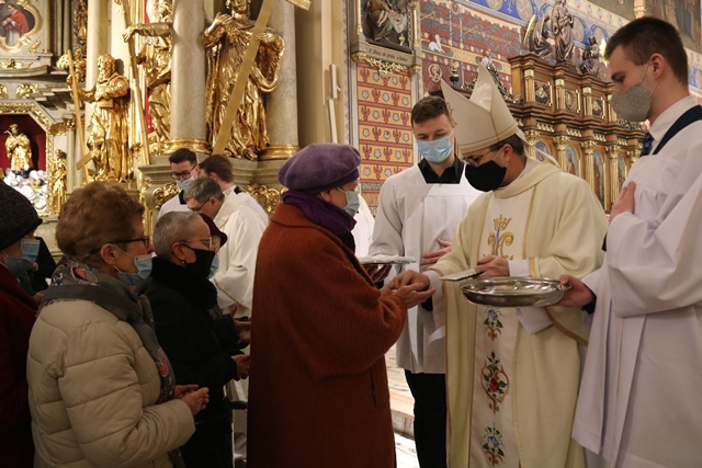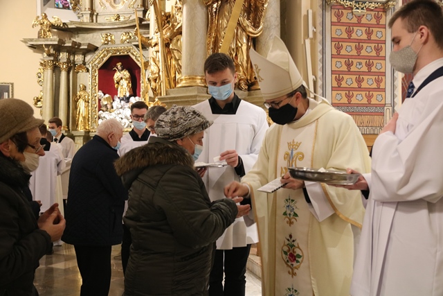 Po Mszy św. biskup kaliski i kapłani udzielili Sakramentu Namaszczenia Chorych z uwzględnieniem reżimu sanitarnego.