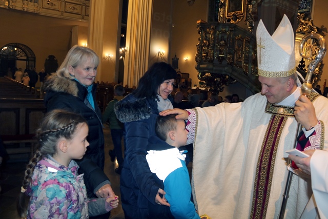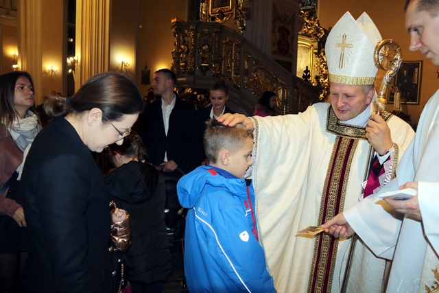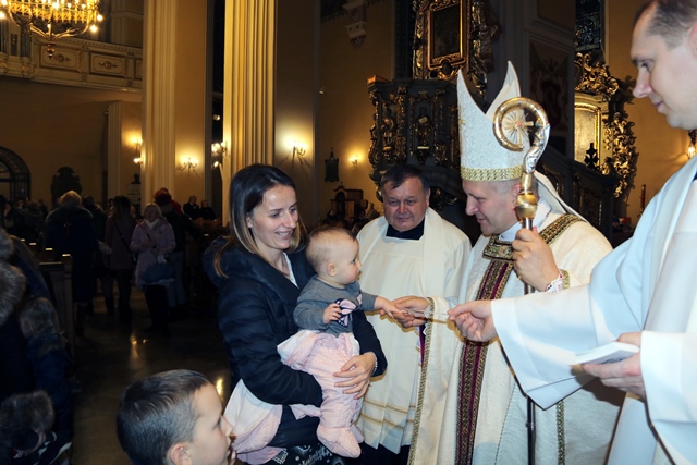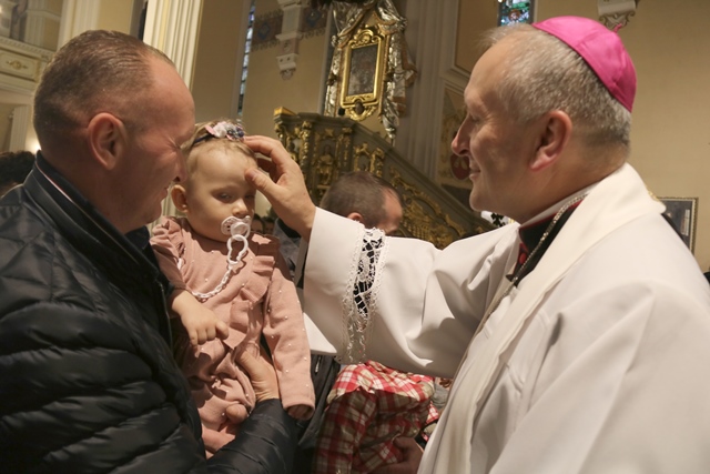 Po Mszy św. bp Łukasz Buzun udzielił błogosławieństwa dzieciom. Wcześniej pobłogosławił dzieci uczestniczące we Mszy św. dziecięcej.