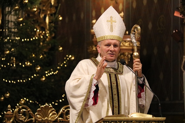 Fot. Ewa Kotowska-Rasiak KAI– Bóg chce narodzić się w sercu każdego z nas, w naszych myślach, chce ubogacić nasze człowieczeństwo, chce żeby nasze relacje były prawidłowe i piękne – mówił bp Łukasz Buzun w katedrze pw. św. Mikołaja w Kaliszu. Biskup pomocniczy przewodniczył tam Mszy św. w pierwszy dzień świąt Bożego Narodzenia.