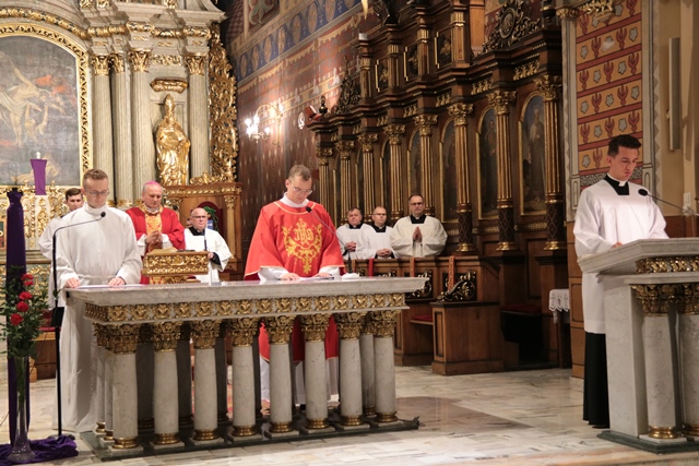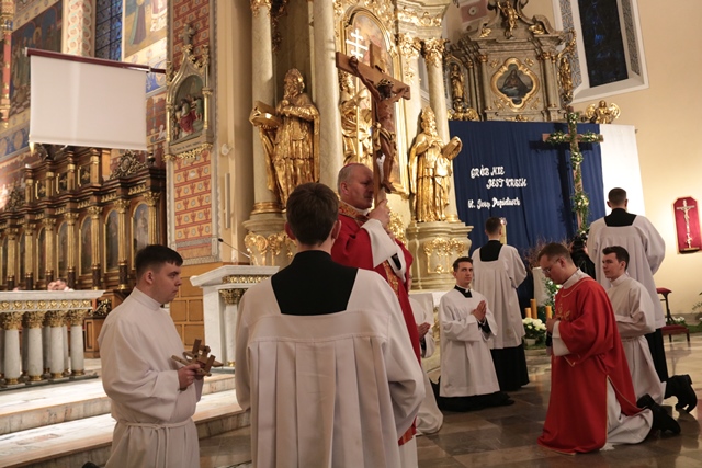 Podczas liturgii Wielkiego Piątku z bp Łukaszem Buzunem modlili się: biskup kaliski Damian Bryl, proboszcz katedry ks. prał. Adam Modliński, kanclerz Kurii Diecezjalnej ks. kan. Marcin Papuziński, kapelan biskupa ks. Szymon Rybak i wikariusze tej parafii.