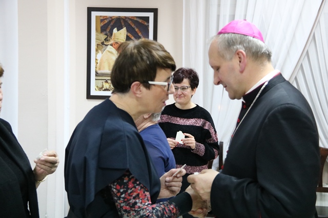 Po Eucharystii przedstawiciele parafialnych oddziałów Akcji Katolickiej spotkali się z biskupem w refektarzu, gdzie przełamali się opłatkiem.