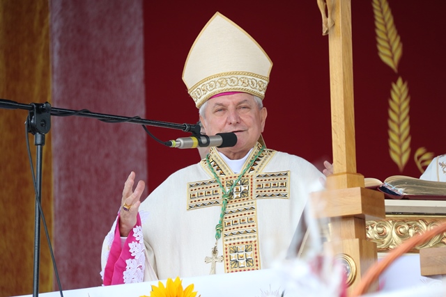 Stwierdził, że chleb jest częścią dziedzictwa kulturowego. – Chlebem błogosławiono nowożeńcom, witano dostojnych gości. Kromkę chleba dawano na pożegnanie jako znak błogosławieństwa oraz zapowiedź szczęśliwego powrotu. Do nowo wzniesionego i poświęconego domu najpierw wnoszono chleb i wodę. Chleba użyczano ubogim i żebrzącym w czynach miłosierdzia – wskazywał hierarcha.