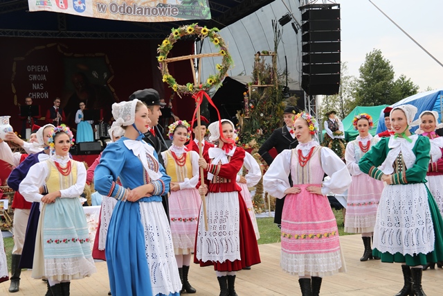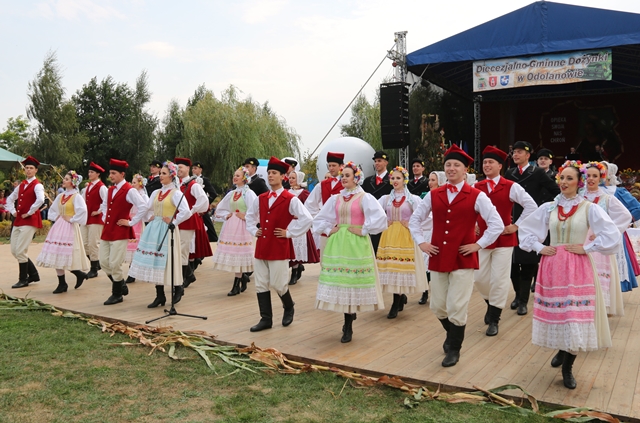 Po Eucharystii starostowie dożynek: Dorota Bzik i Roman Wesołowski z Gorzyc Małych, Katarzyna Szewczyk i Janusz Barczak z Huty, Teresa Pawlak i Paweł Krakowski z Odolanowa, Urszula Lesiewicz i Sławomir Zawidzki ze Świecy I, Małgorzata Szymanowska i Maciej Woźniak ze Świecy II, Katarzyna Wojtszek i Łukasz Dolata z Tarchał Wielkich złożyli bochen chleba na ręce biskupa kaliskiego Edwarda Janiaka, biskupa pomocniczego Łukasza Buzuna, proboszcza parafii pw. św. Marcina w Odolanowie ks. prał. Dariusza Smolnika, burmistrza Odolanowa Mariana Janickiego i przewodniczącego rady miasta i gminy Odolanów Jana Prokopa. Obrzęd dożynkowy odbył się z udziałem Zespołu Pieśni i Tańca „Łany” Uniwersytetu Przyrodniczego w Poznaniu.