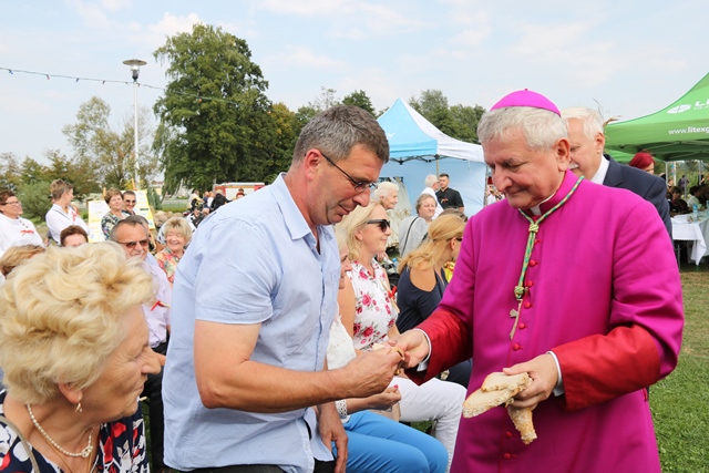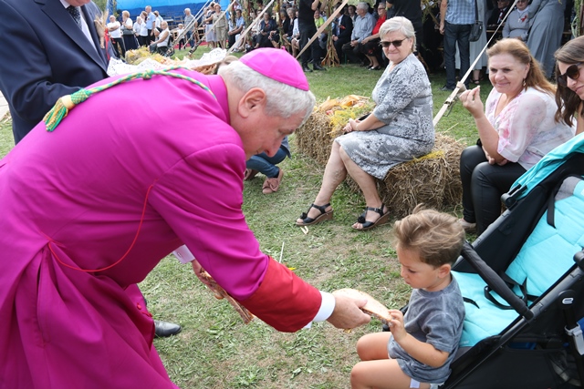 Biskup kaliski podkreślał, że tegoroczne lato ze względu na suszę nie było dobre dla rolników. – Chciejmy dzisiaj z głębi serca dziękować Panu Bogu za chleb powszedni, którego nam nie brakuje. Głodnych nie ma, bo dzielimy się tym chlebem. To jest piękny dar miłości do Pana Boga i drugiego człowieka – powiedział bp Janiak.