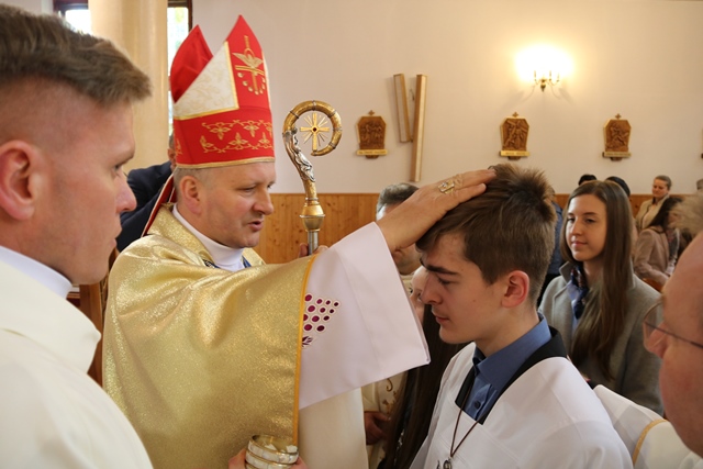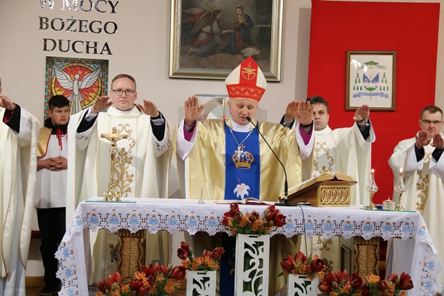 Fot. Rafał RasiakMaryja jest dla nas przykładem wiary, nie cofa się, ale z odwagą i radością patrzy ku przyszłości – mówił bp Łukasz Buzun, który przewodniczył sumie odpustowej w parafii pw. Zwiastowania NMP w Kaliszkowicach Kaliskich. Biskup udzielił młodzieży sakramentu bierzmowania.