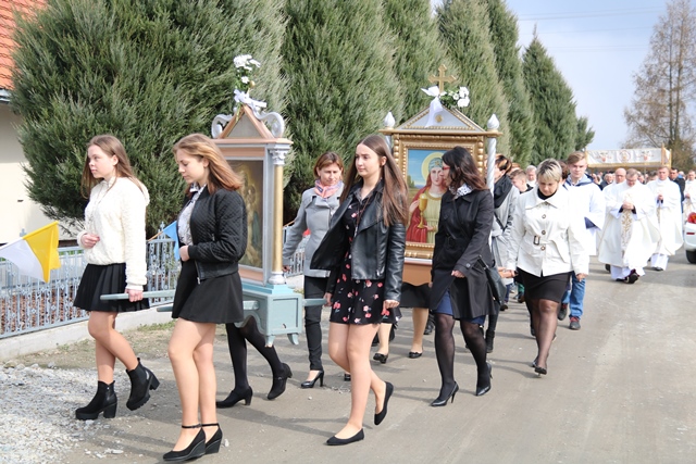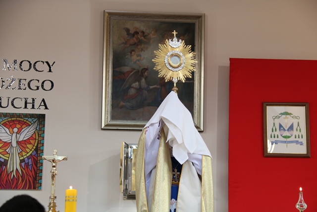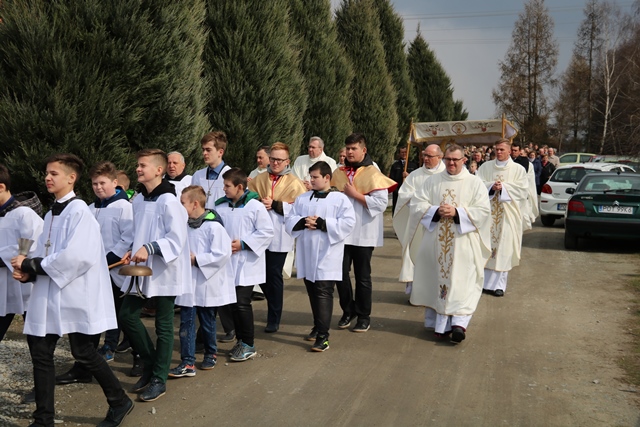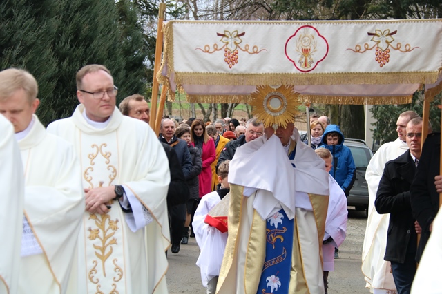 Uroczystość zakończyło odmówienie litanii do Matki Bożej, procesja wokół kościoła i błogosławieństwo Najświętszym Sakramentem.