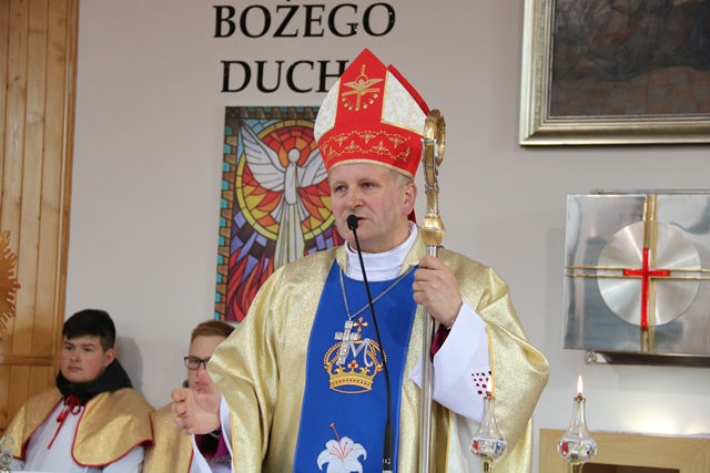 W homilii celebrans odwołując się do dzisiejszej Ewangelii wskazał, że zgoda Maryi jest zgodą wiary. Dodał, że Sobór Watykański II postawił Maryję jako przykład wiary czynnej. – Jest to wezwanie do nas skierowane od Boga przez Maryję, abyśmy byli ludźmi wiary. Myślimy o wierze zaangażowanej w sprawy parafii, społeczności, o wierze, która jest mocna i odważna, która nie ulega łatwo różnym manipulacjom ani też wątpliwościom. Każdy z nas musi być gotowy do odpowiedzi na Boże wezwanie. Nawet wtedy, kiedy bije dzwon w kościele jest to wezwanie Boga skierowane do każdego człowieka mieszkającego na terenie parafii, żeby człowiek powiedział: tak idę do kościoła – powiedział kaliski biskup pomocniczy.
