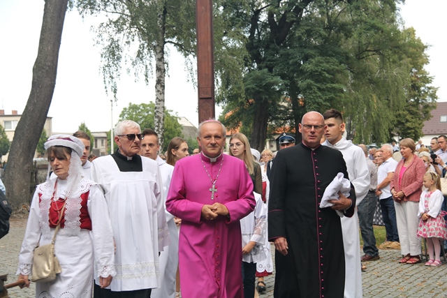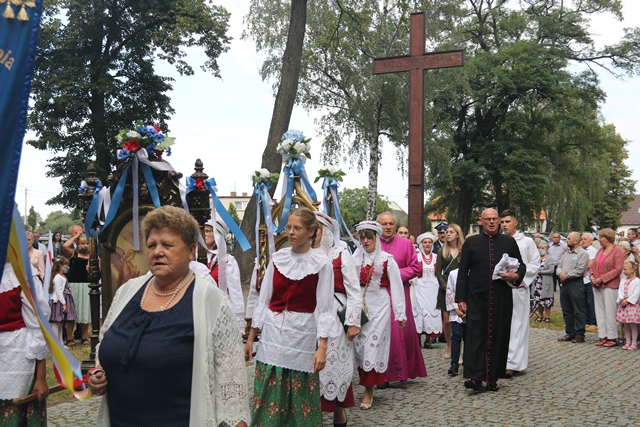 Fot. Ewa Kotowska-Rasiak KAI– Maryję nazywamy naszą Pocieszycielką, bo Ona przychodzi nam z pomocą, pocieszając nas w każdym naszym utrapieniu – mówił bp Łukasz Buzun, który przewodniczył Mszy św. z okazji 50. rocznicy koronacji obrazu Matki Bożej Pocieszenia w Golinie. Obraz koronował 23 sierpnia 1970 r. Prymas Polski kard. Stefan Wyszyński.