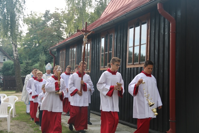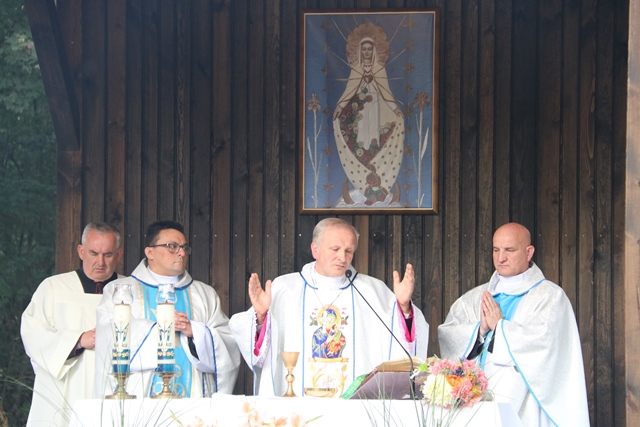 Fot. Ewa Kotowska-Rasiak/KAI– Maryja uczy oddawać się Bogu, szczególnie w chwilach trudnych – mówił bp Łukasz Buzun, który przewodniczył Mszy św. w Krzyżówkach. Biskup poświęcił tam odrestaurowany kościółek i altanę, która pełniła funkcję ołtarza podczas prac remontowych.