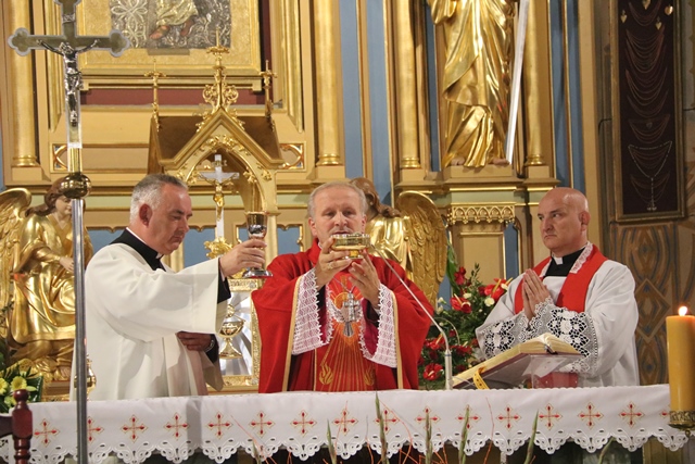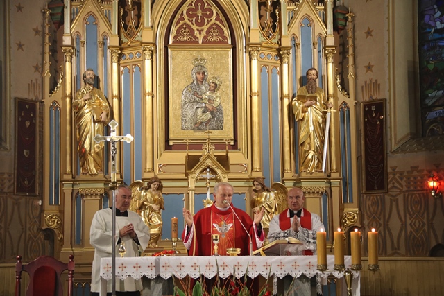 Fot. Ewa Kotowska-Rasiak/KAIBp Łukasz Buzun przewodniczył w sobotni wieczór Mszy św. w parafii Wszystkich Świętych w Liskowie, po której dokonał poświęcenia tablicy upamiętniającej 150. rocznicę urodzin ks. prał. Wacława Blizińskiego i 120. rocznicę jego przybycia do Liskowa, gdzie duchowny przez 39 lat był proboszczem.