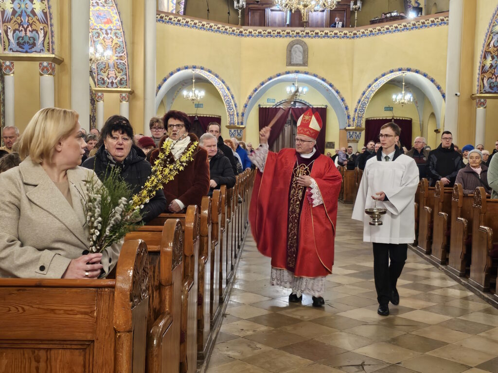Fot. Ewa Kotowska-Rasiak/KAI– Potrzebujemy uzdrowienia naszych myśli i naszego serca. Potrzebujemy Bożego Ducha, a przede wszystkim potrzebujemy gorliwości żalu za grzechy, który obmywa nasze oczy. Potrzebujemy świadomości, co jest dobrem, a co jest złem – mówił bp Łukasz Buzun, który w Niedzielę Palmową przewodniczył Mszy św. w konkatedrze w Ostrowie Wielkopolskim.