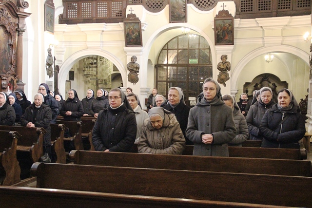 Mszy św. w kościele pw. Świętej Rodziny przewodniczył bp Łukasz Buzun, który w homilii wskazywał, że w centrum Kościoła jest Pan Jezus i że nie ma życia konsekrowanego bez Kościoła.