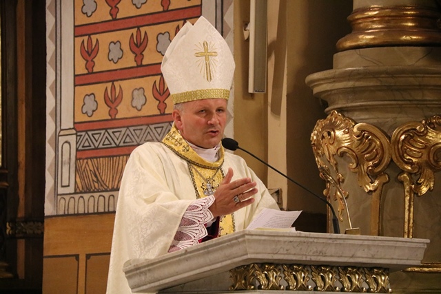 W homilii biskup pomocniczy diecezji kaliskiej przypomniał nauczanie Jana Pawła II z pierwszej pielgrzymki do Polski przed czterdziestu laty. Wskazał, że 10 czerwca 1979 r. na krakowskich Błoniach za sprawą papieża dokonało się bierzmowanie dziejów ochrzczonej już Polski. – Wtedy Ojciec Święty mówił, że od każdej zwycięskiej próby zależy ład moralny. To przesłanie jest ciągle aktualne, bo dzisiaj także bardzo ważny jest ład moralny w człowieku i modlitwa o ład moralny w człowieku jest czymś zasadniczym w naszym życiu – akcentował kaznodzieja.