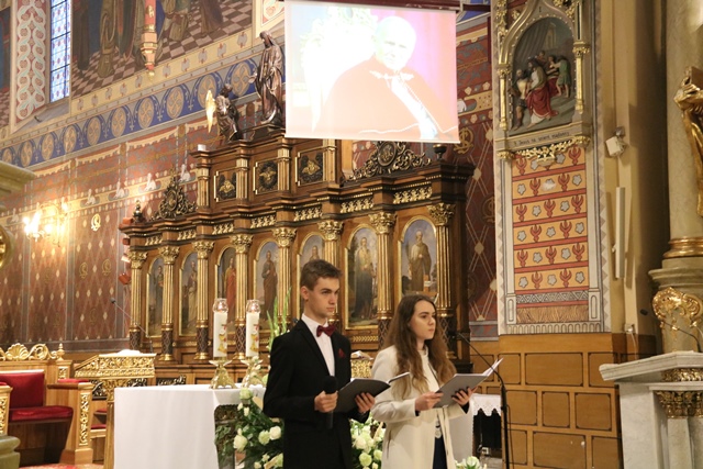 Na początku Mszy św. ks. prał. Adam Modliński przypomniał, że XIX Dzień Papieski obchodzony jest pod hasłem „Wstańcie, chodźmy!”. – Dziś św. Jan Paweł II jest wielkim orędownikiem u Boga. Jego wstawiennictwu polecamy Kościół, którego był pasterzem, naszą ojczyznę, którą tak bardzo kochał, rodziny, o które troszczył się z ojcowską miłością, chorych i cierpiących, których umacniał modlitwą i swoim pasterskim błogosławieństwem oraz dzieci i młodzież, z którymi tak chętnie się spotykał – powiedział proboszcz katedry.