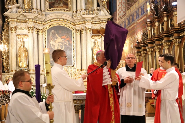 Fot. Ewa Kotowska-Rasiak– Zdrada ma początek w ludzkim wnętrzu, jednak niepomiernie zwielokrotnia się, kiedy przybiera wymiar społeczny, gdy społeczeństwo traktuje Boga jako nieobecnego, wyrzucając Go ze strefy publicznej – mówił bp Łukasz Buzun podczas Liturgii Męki Pańskiej w katedrze św. Mikołaja w Kaliszu.