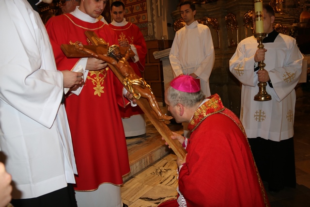 W homilii biskup pomocniczy diecezji kaliskiej wskazywał, że Wielki Piątek to dzień smutku, żałoby, ale przede wszystkim refleksji nad początkiem i końcem, nad sensem życia, śmierci i cierpienia. – To dzień pozornego triumfu zła, grzechu, zawiści. To, co wydaje się być w negatywie staje się początkiem pozytywnego. Porażka okazuje się zwycięstwem, a śmierć prowadzi do życia. Dziś adorujemy Pana chwały w Jego ogołoceniu, uniżeniu i męce, które przyjmuje z miłości do mnie i do ciebie – zaznaczył kaznodzieja.