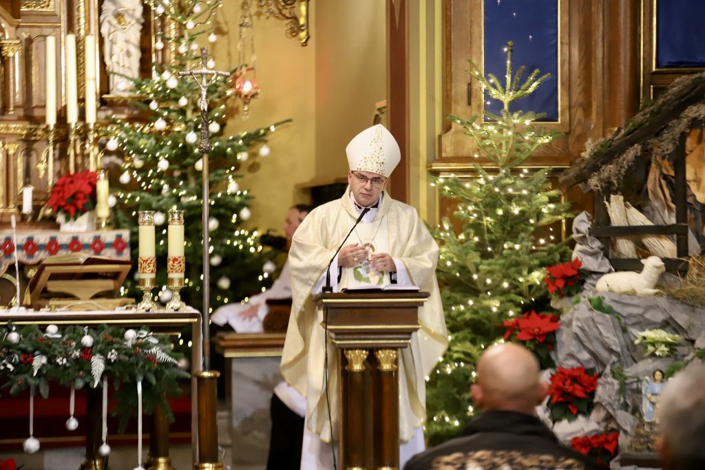 – Ludzie na całym świecie wspominają i celebrują Boże Narodzenie łącząc wiarę i nadzieję, że Boża Dziecina, Jej narodzenie, może przemienić ich życie, losy świata i napełnić łaknące serca miłością – mówił bp Robert Chrząszcz przywołując przykłady mocy, która jest w misterium Bożego Narodzenia. Opowiedział m.in. historię z frontu pierwszej wojny światowej, gdy w Wigilię 1914 r. niemieccy wojskowi świątecznie przystroili okopy i zaczęli śpiewać kolędę „Cicha noc” – wówczas przyłączyli się do nich żołnierze brytyjscy. – Boże Narodzenie okazało się silniejsze od wojny – podkreślił biskup.