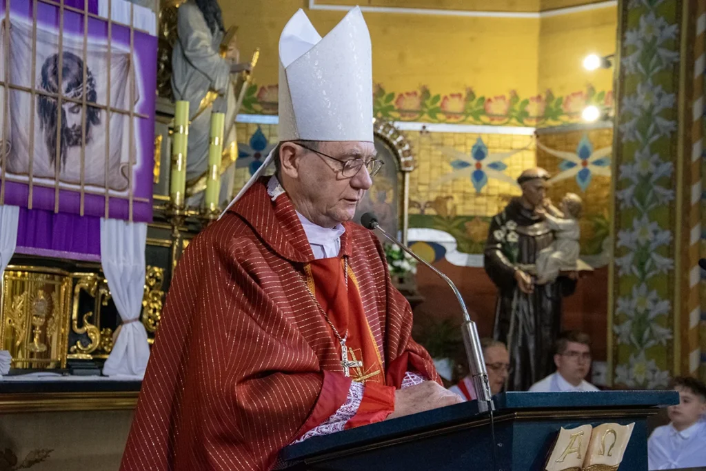 – Tu, w Sanktuarium Świętego Krzyża gdzie, jak świadczą najstarsze kroniki, od wieków spieszył lud Boży i gdzie ukrzyżowany Chrystus, jakby z tronu swego, wysłuchiwał cierpiących i zmartwionych, odzyskujemy zdrowie, o czym świadczą liczne wota oraz zapisy w kronikach parafialnych. Ale tu również możemy umrzeć dla grzechu – powiedział bp Chudzio i zachęcał, by już więcej nie popełniać grzechu. – Chodzi zwłaszcza o ten grzech, do którego jesteśmy prawdziwie przywiązani: grzech, który wprawdzie wyznajemy, lecz bez rzeczywistej woli powiedzenia mu „dość” – dodał.