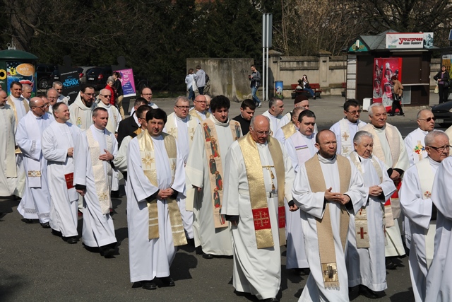 Po nabożeństwie w katedrze kapłani procesyjnie przeszli do Narodowego Sanktuarium św. Józefa na Eucharystię. Mszy św. przewodniczył bp Andrzej Czaja, ordynariusz diecezji opolskiej w asyście biskupa kaliskiego Edwarda Janiaka, biskupa pomocniczego Łukasza Buzuna, bp. seniora Stanisława Napierały i zgromadzonych księży.
