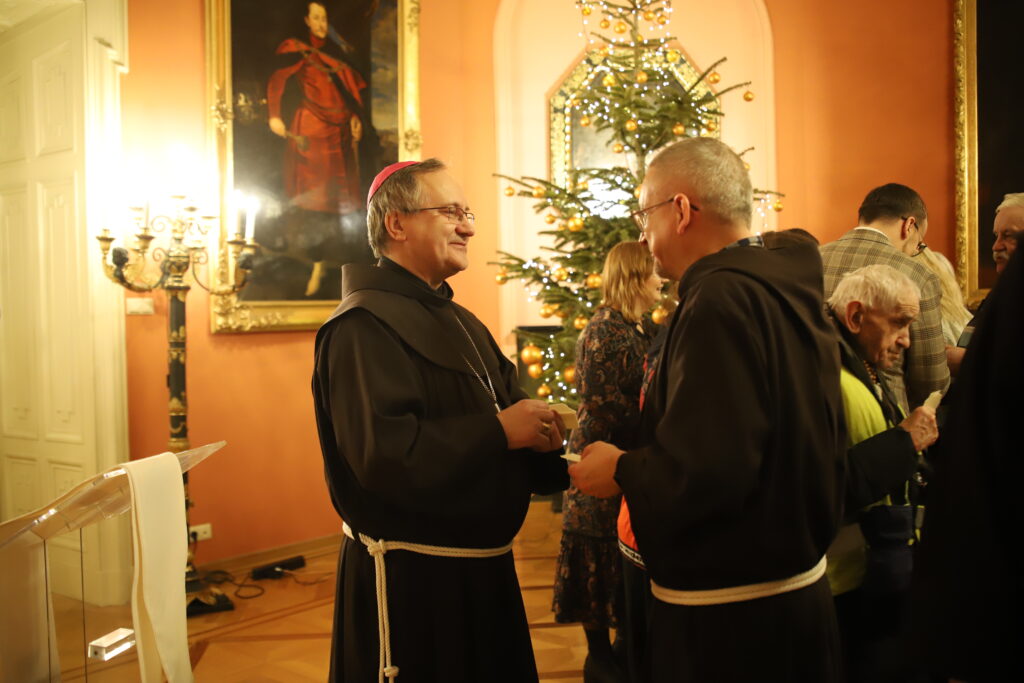 Fot. BP Archidiecezji Krakowskiej– Dar pokoju jest zaproszeniem do tego, by się nim dzielić, by żyć nim każdego dnia. Pokój bowiem jest zapowiedzią zwycięstwa Chrystusa nad śmiercią. My mamy być ludźmi pokoju – mówił bp Damian Muskus OFM w czasie spotkania opłatkowego Franciszkańskiego Zakonu Świeckich.