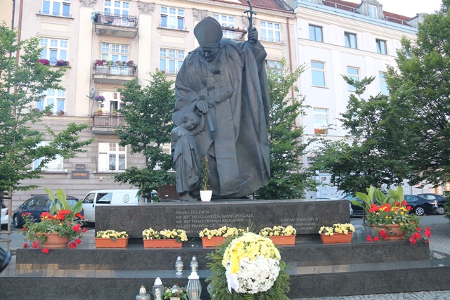 Po Mszy św. biskupi, kapłani i wierni przeszli pod pomnik św. Jana Pawła II, gdzie odmówiono modlitwę za rodziny i złożono kwiaty.
