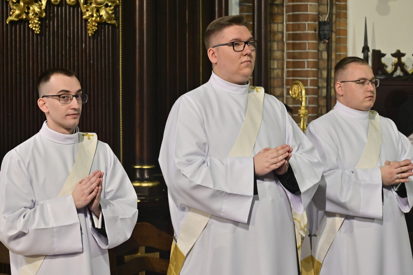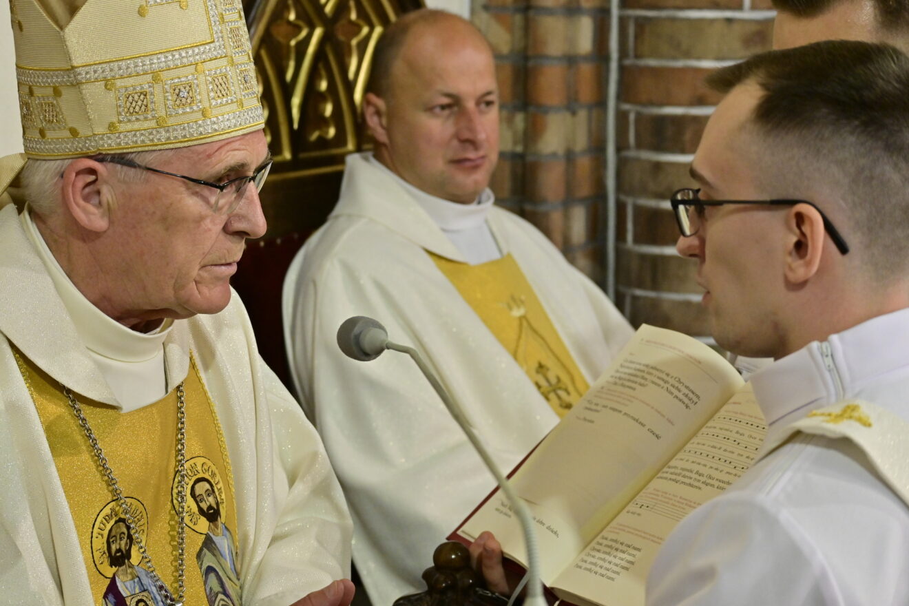 – Trzeba mieć odwagę wejść na drogę, którą wskazuje Bóg. Trzeba mieć odwagę, aby dzisiaj wejść na drogę powołania kapłańskiego. Za tę waszą odwagę, drodzy diakoni, Panu Bogu dziękujemy. […] Dzisiaj, w dzień święceń kapłańskich mówicie Bogu, na Jego plan wobec was, ostateczne – fiat, wasze – tak – akcentował hierarcha.