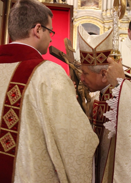 Witając biskupa i licznie zgromadzonych członków Akcji Katolickiej ks. prał. Adam Modliński wskazywał na krzyż, który w Wielki Piątek 2005 r. papież Jan Paweł II tulił do swojej piersi. – Od 22 października patronem Akcji Katolickiej jest św. Jan Paweł II. To łaska Boża, że właśnie dzisiaj, gdy na tej Mszy św. gromadzą się przedstawiciele Akcji Katolickiej z całej diecezji, w tym kościele jest krzyż, przy którym modlił się i do którego z synowską miłością i głęboką czcią tulił się Ojciec Święty Jan Paweł II osiem dni przed przejściem z tego świata do Domu Ojca – powiedział proboszcz katedry.