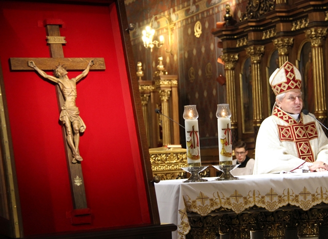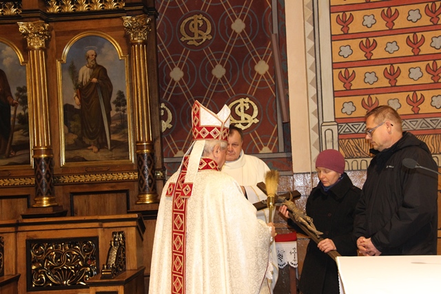 Podkreślał, że krzyż jest mocą dla człowieka i znakiem ludzkiej nadziei. – Jezus na krzyżu niesie nadzieję. Krzyż jest też zachętą do podjęcia naszego osobistego krzyża. W życiu człowieka spotykamy krzyż samotności, zdrady, choroby, nieszczęśliwych wypadków, oszczerstwa – wskazywał rekolekcjonista. Przypomniał słowa św. Jana Pawła II, który apelował, aby Polacy bronili krzyża i nie wstydzili się go. Podczas Mszy św. bp Edward Janiak poświęcił kopię krzyża papieskiego wykonaną przez tego samego rzeźbiarza.