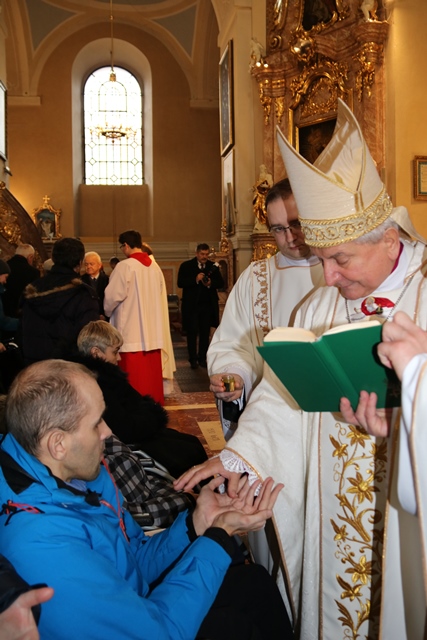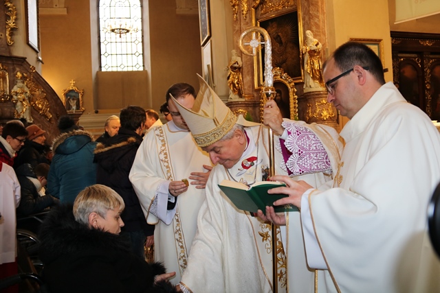 Stwierdził, że cierpienie złączone z krzyżem Chrystusowym nabiera sensu. – Cierpienie jest tajemnicą w życiu człowieka. Nigdy nie mówmy, że ktoś cierpi, bo go Pan Bóg skarał. Nie wiesz czy nie cierpi za mnie, za ciebie. Tylko cierpienie złączone z tajemnicą krzyża nabiera głębokiego sensu, ale my jako ludzie sprawdzamy się w naszej miłości do Boga poprzez wrażliwość na drugiego człowieka – podkreślił bp Janiak.