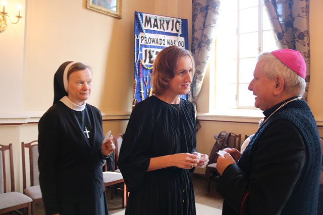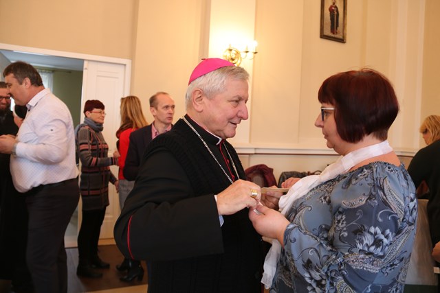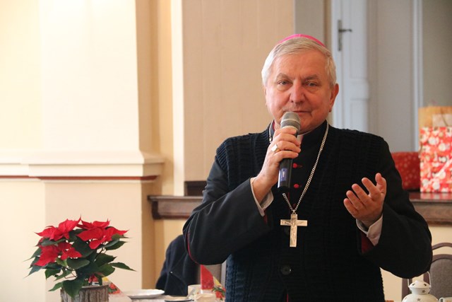 Po Mszy św. biskup kaliski Edward Janiak złożył katechetom życzenia i przełamał się opłatkiem.