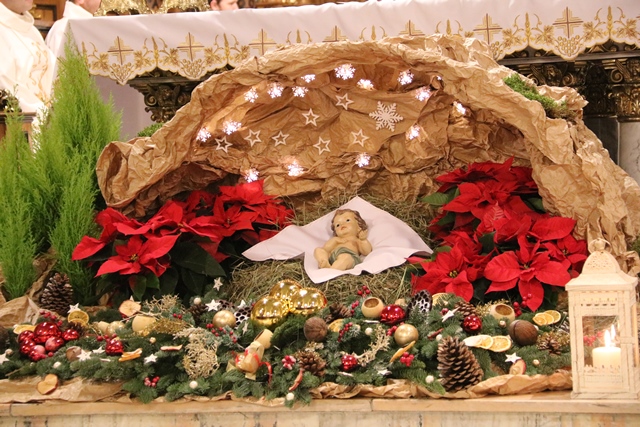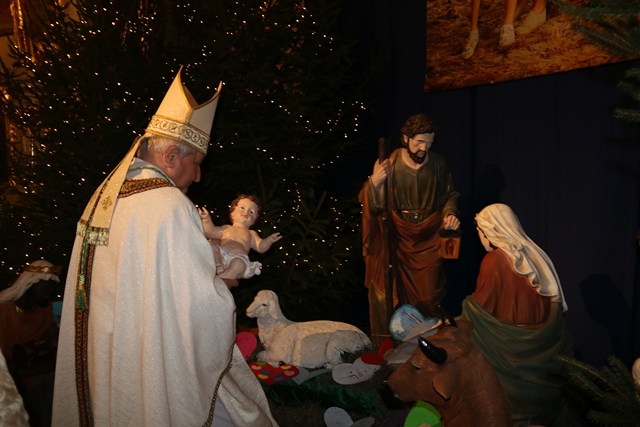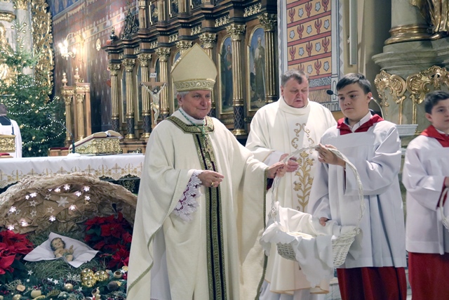 Przed rozpoczęciem Eucharystii w procesji bp Janiak zaniósł figurkę Dzieciątka do żłóbka.