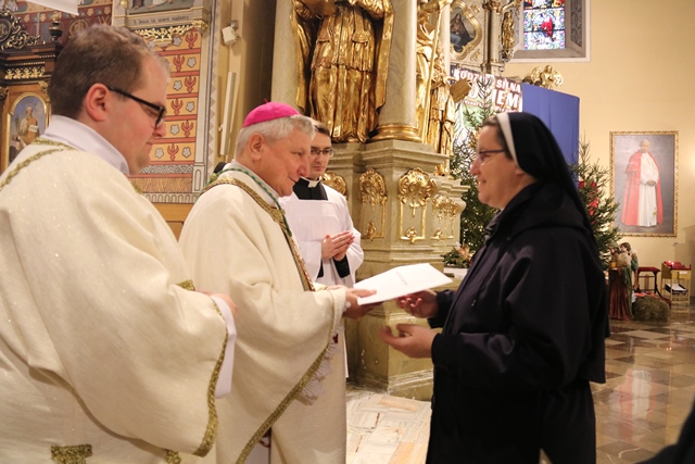 Przed udzieleniem pasterskiego błogosławieństwa biskup kaliski podziękował osobom konsekrowanym za posługę w diecezji kaliskiej. – Wszystkim dziękuję za służbę w diecezji, za pracę w szkołach, przedszkolach, ośrodkach dla chorych i niepełnosprawnych. To jest piękne świadectwo waszej postawy – mówił bp Janiak.