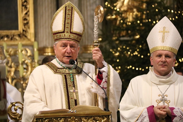 Fot. Ewa Kotowska-Rasiak KAI– Wszystkim osobom konsekrowanym dziękuję za służbę w diecezji, za pracę w szkołach, przedszkolach, ośrodkach dla chorych i niepełnosprawnych. Habit zakonny jest znakiem w dzisiejszym laickim świecie – mówił biskup kaliski Edward Janiak do osób konsekrowanych w katedrze św. Mikołaja w Kaliszu, gdzie przewodniczył Mszy św. Wraz z nim modlił się także biskup pomocniczy paulin o. Łukasz Buzun.