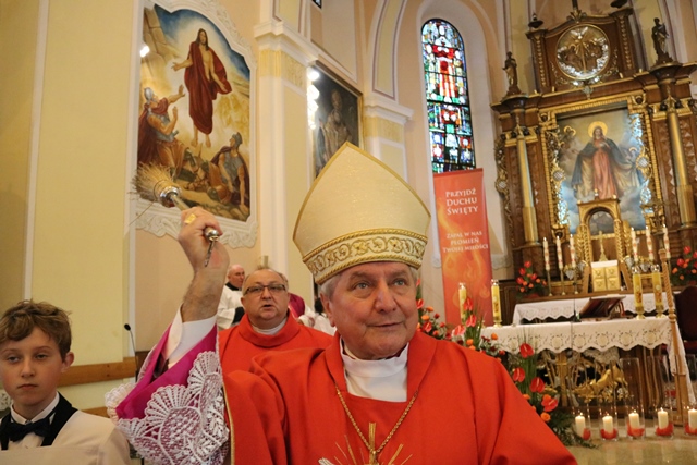 Wskazywał na św. Jana Pawła II, który od dzieciństwa poprzez młodość był otwarty na działalność Ducha Świętego. – Po napisaniu encykliki poświęconej Duchowi Świętemu papież wyznał, że to było spłacenie długu wobec ojca, który niegdyś upomniał go, że mało modli się do Ducha Świętego – mówił celebrans.