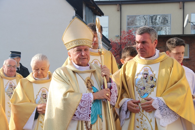 Fot. Ewa Kotowska-Rasiak– Wspólnota Kościoła jest otwarta na ludzi, którzy sobie nie radzą. To nie są tylko niepełnosprawni, ale także osoby, którym ciężko w życiu, trzeba im pomóc, podać tę kromkę chleba – mówił bp Edward Janiak w Sanktuarium Matki Bożej Skalmierzyckiej. Biskup kaliski modlił się w intencji pracowników Spółdzielni Mleczarskiej „Lazur” obchodzącej 90. rocznicę istnienia i poświęcił nowy budynek Domu Parafialnego.