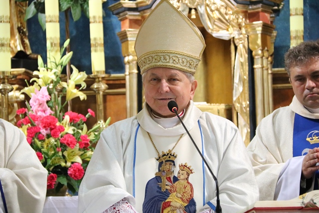 Fot. Ewa Kotowska-Rasiak– Jesteśmy za każdym życiem, tym życiem pod sercem matki i tym gasnącym. Mówimy nie aborcji i eutanazji – mówił biskup kaliski Edward Janiak, który przewodniczył Mszy św. z okazji odpustu Narodzenia NMP i 10. rocznicy koronacji obrazu Matki Bożej Kotłowskiej.