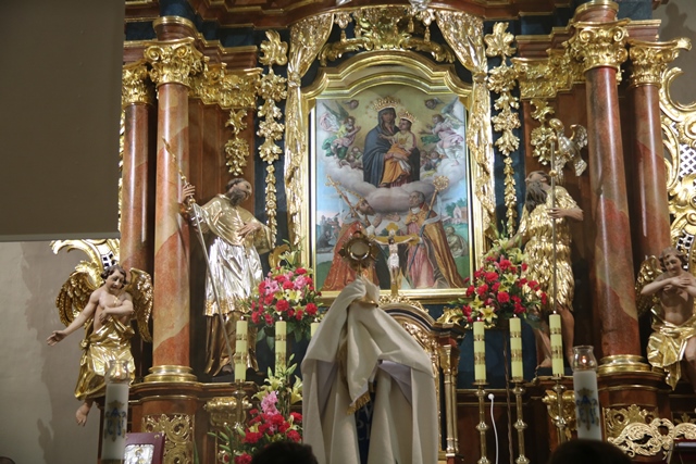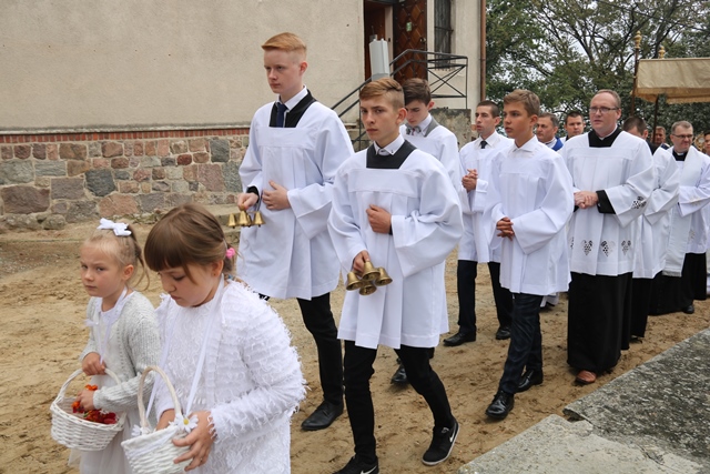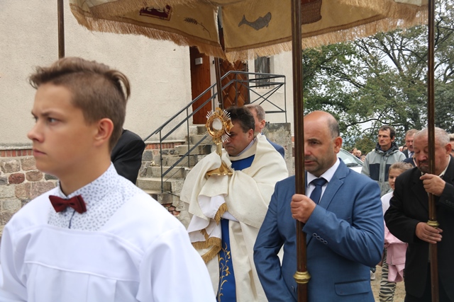 Odpust zakończyła procesja wokół kościoła i błogosławieństwo Najświętszym Sakramentem.