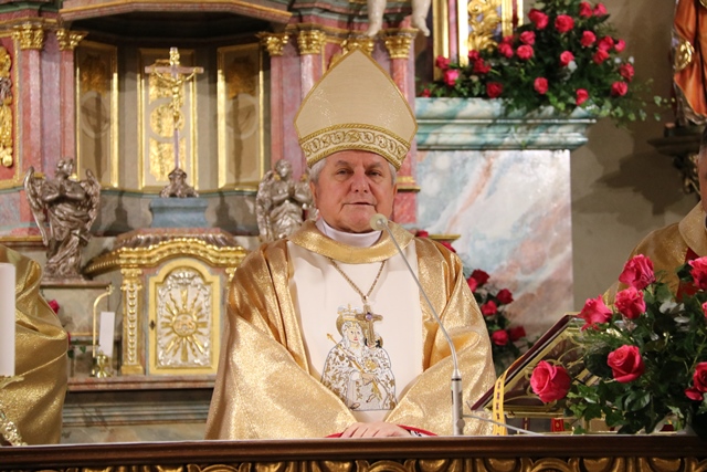 Zaznaczył, że świątynia materialna jest miejscem pogłębienia więzi z Panem Bogiem. – Ta świątynia materialna świadczy o mieszkańcach. – Całe nasze życie jest związane ze świątynią począwszy do chrztu świętego, poprzez przyjęcie pierwszej komunii św., spowiedź, bierzmowanie, sakrament małżeństwa i sakrament namaszczenia chorych. Od pierwszego dnia ziemskiej pielgrzymki do ostatniego losy nasze są złączone ze świątynią, a wszystko po to, aby żyć wiecznie, abyśmy mogli kiedyś spotkać się z Bogiem, który jest miłością – przekonywał hierarcha.