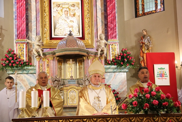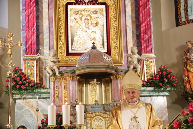 Fot. Ewa Kotowska-RasiakOby was nikt nie odwiódł od uczestnictwa w niedzielnej Mszy św. . Trzeba dbać o wiarę, o Kościół duchowy, o wnętrze, bo wiarę można stracić – mówił bp Edward Janiak w kościele pw. NMP Wniebowziętej w Gołuchowie. Biskup kaliski poświęcił nowy ołtarz ku czci Matki Bożej i ustanowił główny odpust parafii na dzień 15 sierpnia w uroczystość Wniebowzięcia NMP.