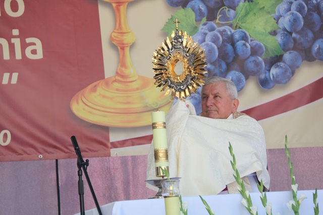 Prosił zgromadzonych, aby zaprosili do swojego życia Boga. – W to piękne święto Ciała i Krwi Pańskiej na ołtarzu składamy wszystkie troski, ale też przywary i błędy, wypraszając Boże błogosławieństwo. Chciejmy Pana Boga zaprosić do naszych rodzin, do naszych serc, byśmy z mocą i siłą wytrwali w dźwiganiu codziennego krzyża, a to ziemskie pielgrzymowanie czy nam się podoba czy nie kiedyś skończy się – podkreślał kaznodzieja.