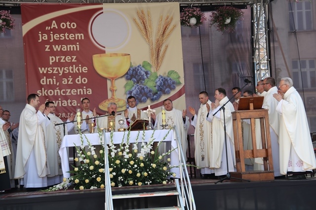 Po procesji, Mszy św. na rynku przewodniczył bp Edward Janiak, w asyście księży neoprezbiterów i licznie zgromadzonych kapłanów.