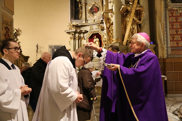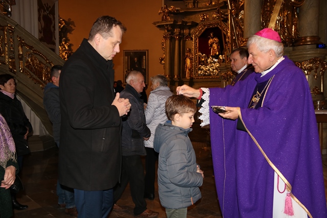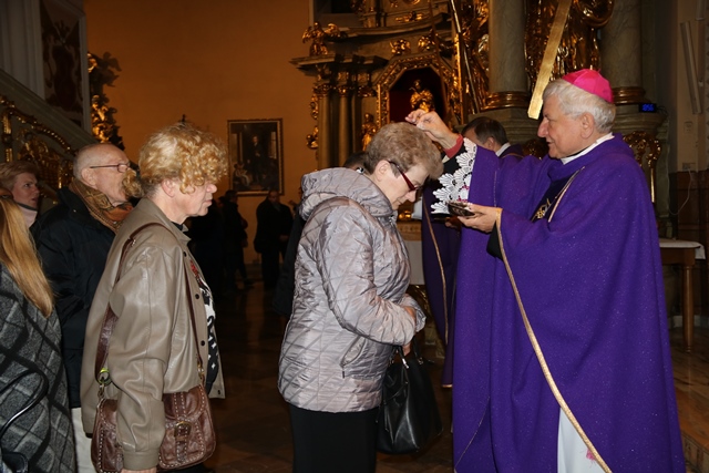 Dodał, że wszystkie uczynki pokutne należy spełniać w cichości, dyskrecji, nie na pokaz. – Idźmy zatem w ten święty czas w postawie wielkiej modlitwy, wielkiego postu, wielkiej jałmużny. Będzie to nasza wielkopostna droga. Niech to będzie też droga pokuty radosnej, a nie posępnej. Poprzez uśmiech do drugiego człowieka i życzliwość życie nasze i innych staje się lepsze. Popiół za chwilę przyjęty niech będzie znakiem naszego głębokiego pragnienia wielkopostnej odnowy wewnętrznej – mówił bp Janiak.