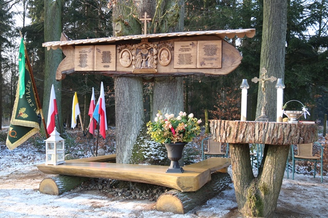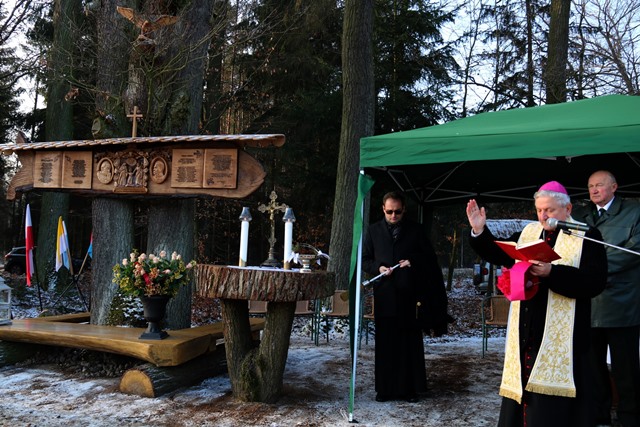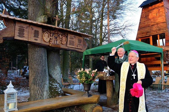 – Moim marzeniem było utworzenie w lesie miejsca kultu religijnego oraz pamięci ku czci leśników i myśliwych, którzy wyrośli z jednego pnia. Z racji obchodzonego Nadzwyczajnego Roku Świętego Józefa Kaliskiego umieściliśmy obraz Świętej Rodziny, a symbolami 100. rocznicy odzyskania przez Polskę niepodległości są rzeźby św. Jana Pawła II i Marszałka Józefa Piłsudskiego – powiedział w rozmowie z KAI myśliwy Józef Bażant z Koła Łowieckiego nr 37 „Słonka”, który dodaje, że w wykonaniu dzieła pomogli mu artyści Tadeusz Jarczewski i Bolesław Białecki.